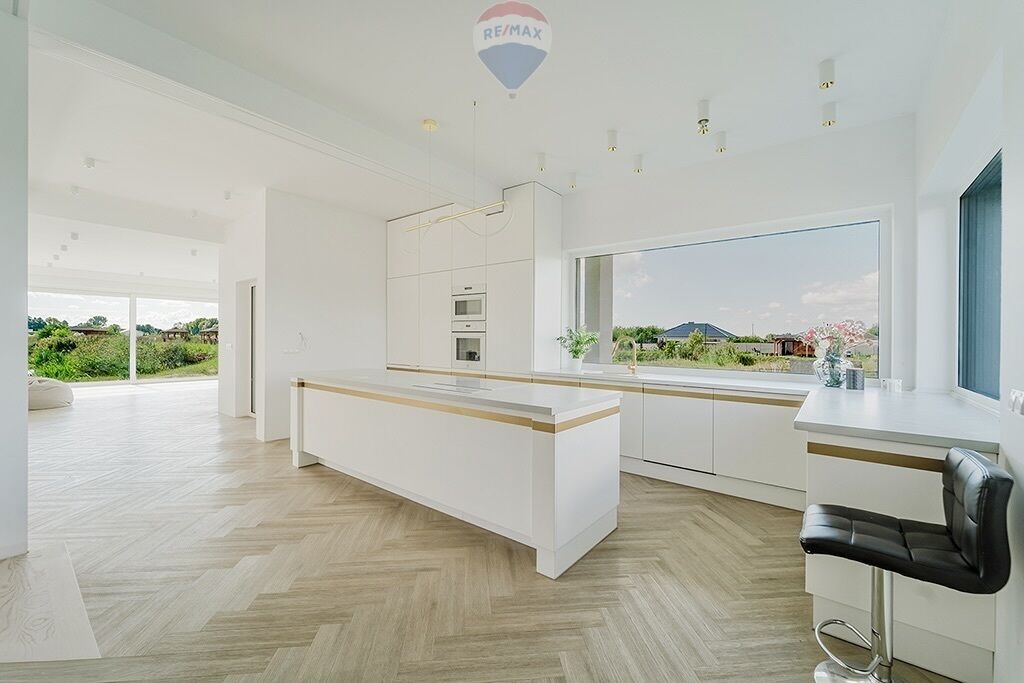 - stylowa kuchnia w bieli i złocie, która jest sercem domu i spełni